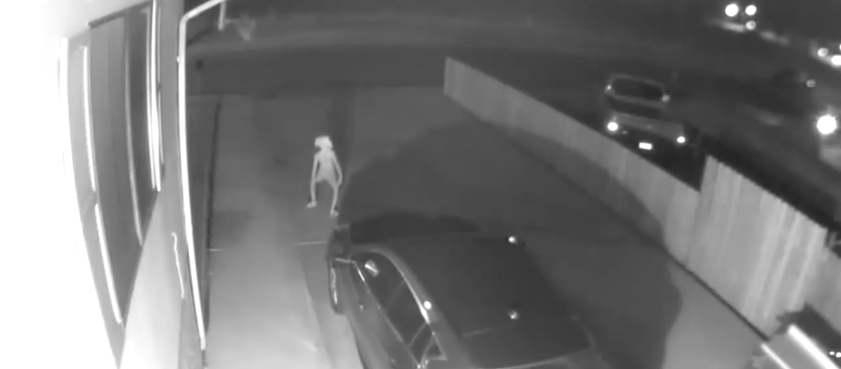 Необычным видео с камеры наблюдения поделилась на своей страницей пользовательница «Фейсбука» Вивиан Гомес из США. На кадрах видно, как сначала появляется тень, а потом вдоль дома чудаковато шагает маленькая и очень худая фигурка.