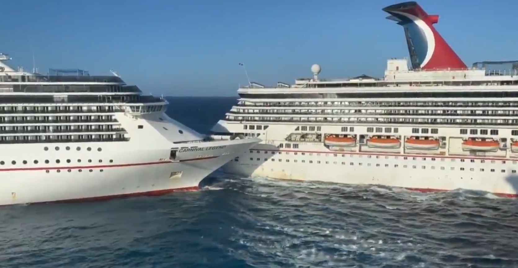 Два крупных круизных лайнера компании Carnival Cruise врезались друг в друга на подходе к пристани рядом с островом Косумель в Мексике, видео было опубликовано в «Твиттере».