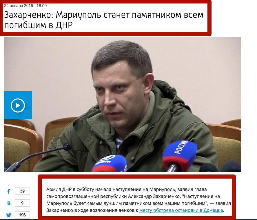 18:00. Российские СМИ поспешили рассказать, как ополчение пошло в наступление на Мариуполь. Достоверное количество жертв от обстрела «Градами» еще неизвестно.