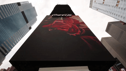 На нью-йоркской площади Таймс-сквер появилась первая трехмерная реклама. Это — рекламный щит Coca-Cola, в конструкции которого задействованы 1760 LED-экранов на шести этажах. Каждый кубический дисплей изготовлен и работает так, чтобы быть независимым от тысячи других.