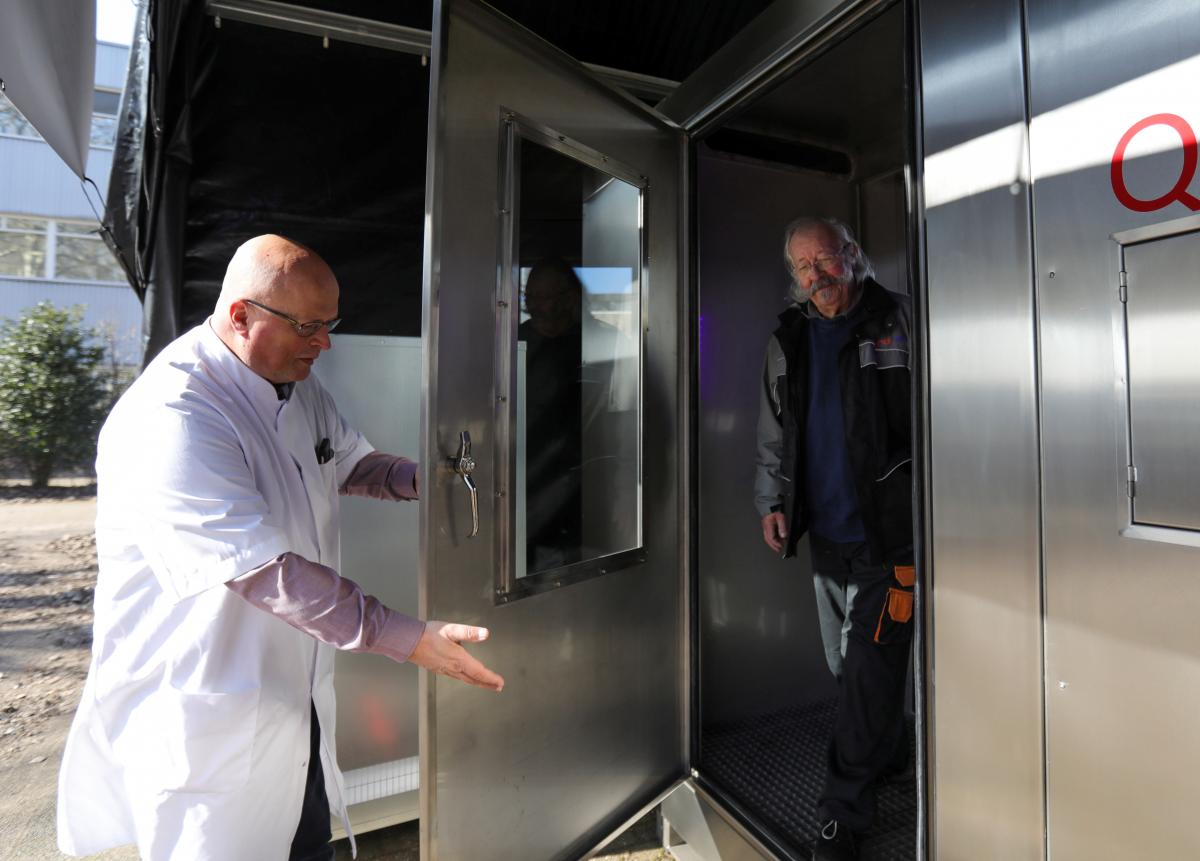 Чтобы испытать свое изобретение, Питер ван Виз установил такую кабинку возле центра тестирования на коронавирус на окраине Амстердама. Процесс тестирования занимает около трех минут. Изобретатель считает, что такая кабинка могла бы быть полезной на концертах, в аэропортах, школах и офисах.