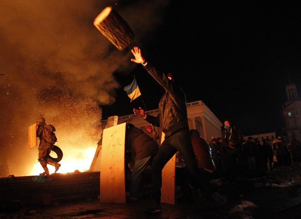 В Киеве возобновились противостояния. Силовики применяют шумовые гранаты и газ, отстреливаются резиновыми пулями. Радикальные протестующие так же применяют оружие. Проливается кровь.