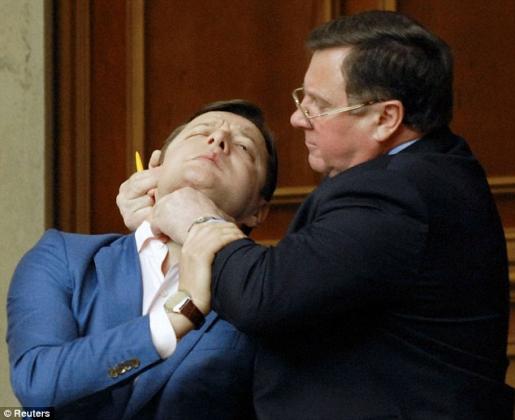 Но удержать «заразу» в стенах парламента – никак не удается. Время от времени Верховную Раду сотрясают разного рода гей-скандалы. Чаще всего в них фигурирует нардеп и лидер Радикальной партии Олег Ляшко. Последний раз его имя фигурировало в подобном скандале год назад. В июле 2012 года его задержали сотрудники милиции при попытке вывезти из севастопольского интерната двоих мальчиков 12 и 14 лет. Тогда депутат заявил, что он просто хотел оздоровить детей на одном из курортов Турции. Буквально через несколько дней Вадим Терещенко, шестнадцатилетний активист организации защиты сескменьшинств столицы обвинили нардепа в изнасиловании в извращенной форме. Он заявил, что на одной из вечеринок, Ляшко споил его друга, а ему самому подсыпал снотворного, а потом «воспользовался» ситуацией. Сам политик заявил, что его просто хотят оклеветать. Но на самом деле, он фигурировал в секс-скандала и до этих двух случаев. Так в 2002 году Ляшко получили от курсанта Киевского военного училища легкие телесные повреждения. Парень оказался натуралом и соответственным образом «ответил на заигрывания» политика. Ляшко, чтобы восстановить репутацию заявил, что парень на него напал, так как хотел его ограбить. А вот в 1994 году интернет «покорило» видео, в котором Ляшко рассказывает о том, как оказывал услуги интимного характера некоему Боре из АП, за это он получил деньги и продвижение по карьерной лестнице. К слову, однажды в порыве чувств Ляшко как-то обмолвился, что пусть журналисты обратят внимание на Азарова, дескать, он еще тот любитель мальчиков.