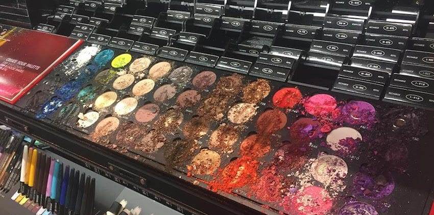 Вероятно, одна из покупательниц пришла в магазин вместе с ребенком. Пока женщина выбирала хайлайтер или тестировала новую тушь, малышу стало скучно. Возможно, ребенок решил, что перед ним краски или пластилин, как бы то ни было, дитя дало волю творчеству и полету воображения. В итоге огромный набор косметики стоимостью 1300 долларов пришел в полную негодность.