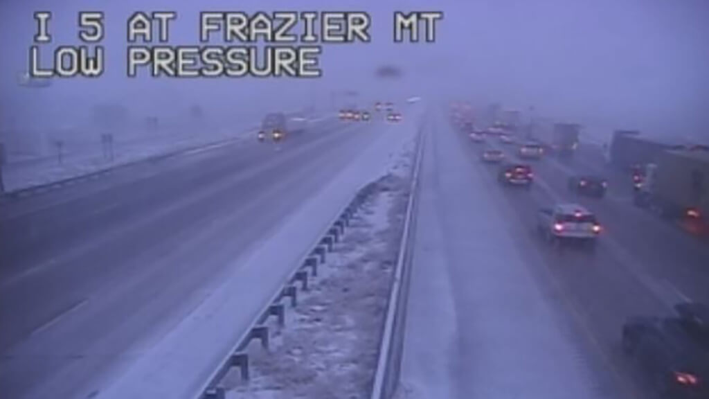 В среду утром Калифорния закрыла межштатную автомагистраль Interstate 5 между северными городами Ирика и Реддинг, потому что транспортные средства начало заносить из-за метели.