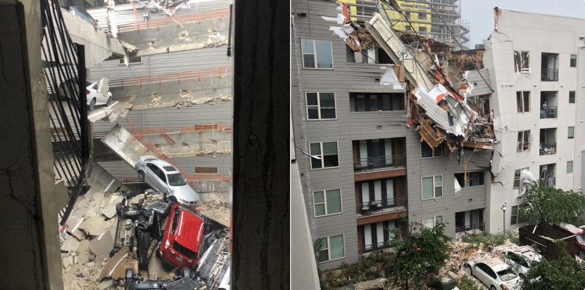 В то время, когда кран падал на пятиэтажный жилой дом и паркинг, сообщалось о порывах ветра до 113 км/ч. Разрушены около 10 квартир.