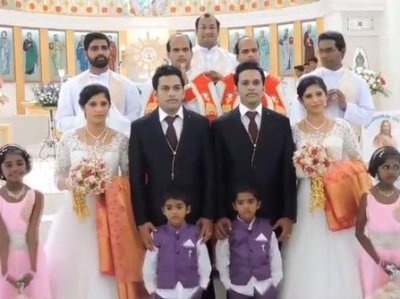 Священники-близнецы поженили братьев-близнецов на сестрах-близнецах.