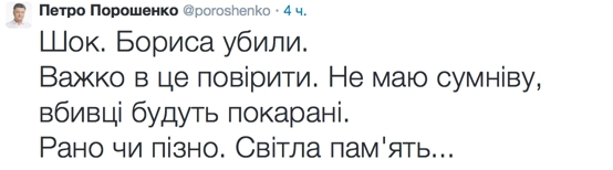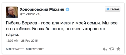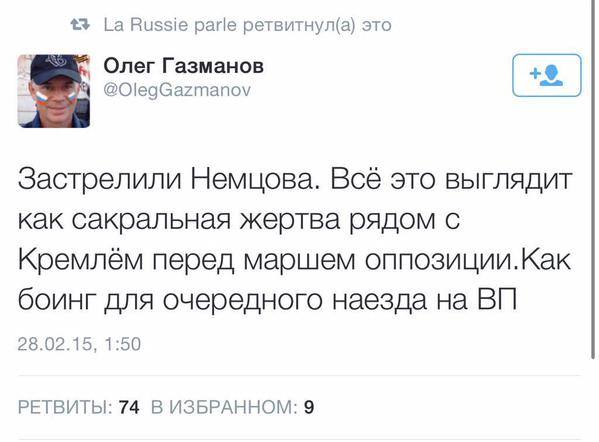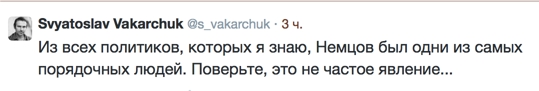 Вчера вечером в центре Москвы был убит российский оппозиционный политик Борис Немцов.  Его расстреляли из проезжающего мимо автомобиля совсем недалеко от Кремля. Политику было 55 лет, у него осталось четверо детей. Социальные сети отреагировали на зверское убийство еще ночью. Мы сделали подборка самых красноречивых реакций от людей, которые знали Немцова.