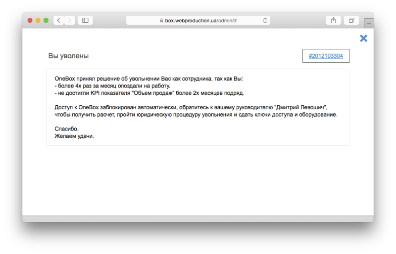Украинская компания WebProduction разработала CRM-систему под названием One Box, которая может автоматически нанимать и увольнять сотрудников. О своем резонансном нововведении компания заявила в социальных сетях,  вызвав тем самым оживленную дискуссию.