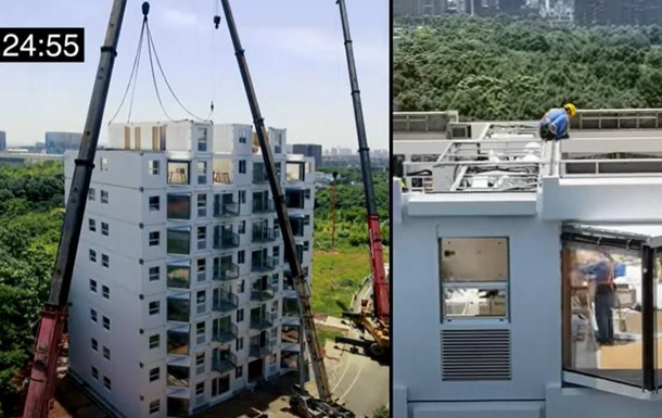 В Китае одна из строительных компаний собрала здание в 10 этажей за 28 часов 45 минут. Об этом сообщает New Atlas.