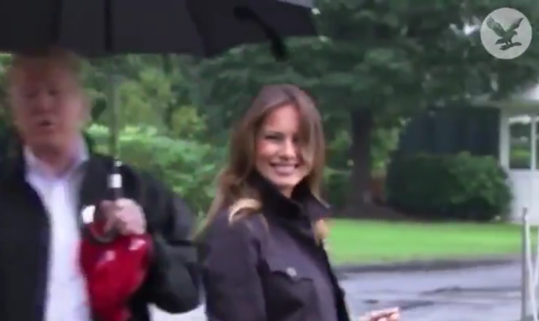 Любопытно, что даже после подхода к прессе лидер страны шёл под зонтом один, в то время как его супруга продолжала мокнуть под дождём. При этом в соцсетях пользователи пытаются понять, почему Трамп так поступил.