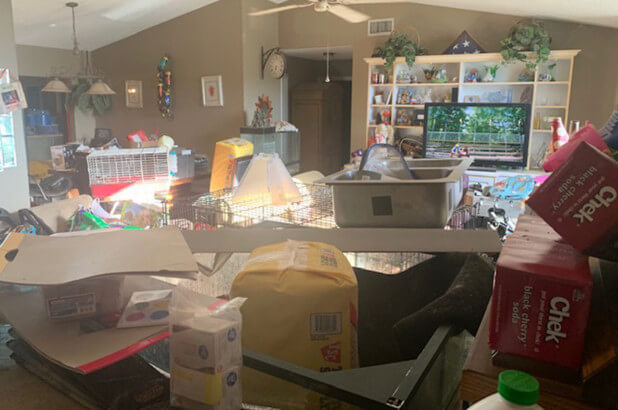 Офицер полиции Энтони Бинц написал в своем отчете, что в доме негде ступить, чтобы обойти фекалии животных и различный мусор.
