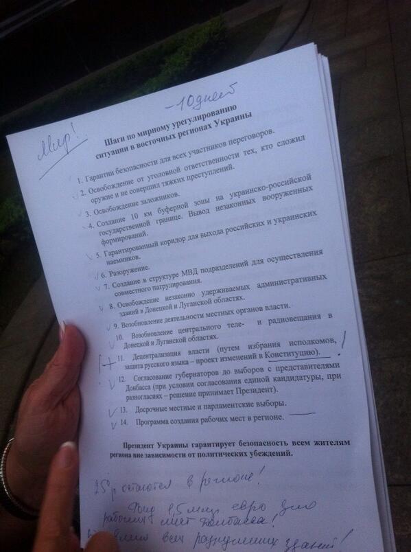 Закончить хотелось бы мирным планом президента Петра Порошенко, с которым вы можете ознакомиться: