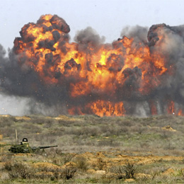 По официальным данным, на полигоне взорвалась самоходная артиллерийская установка, которая была заряжена боевыми снарядами. Возник пожар, который распространился на склады, в них хранилось оружие и боеприпасы, как результат последовала череда взрывов. По меньшей мере уничтожено тридцать машин, склады полыхали до вечера.