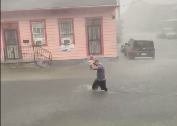 Согласно прогнозам синоптиков, линии грозы, связанные с погодной системой, которая превратится в ураган к пятнице, накрыли Новый Орлеан 7 дюймами дождя в течение 3 часов в среду утром.