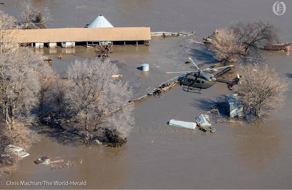 Спецслужбы используют лодки и большие транспортные средства, чтобы спасти и эвакуировать жителей в некоторых частях не только штата Небраска, но и Среднего запада США в целом, где буря стала причиной сильных ливней, выпавших на промерзшую землю. Практически все реки в Небраске, Южной Дакоте, Айове и Миннесоте вышли из берегов. Наводнение в некоторых местах считается самым сильным за последние 10 лет.